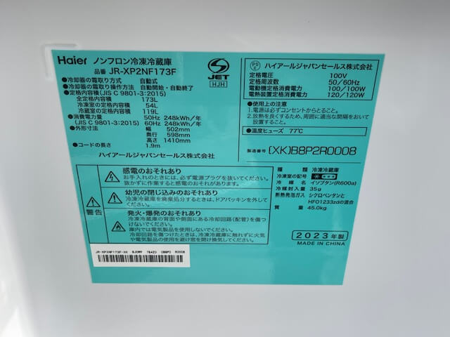 入荷したのは、ハイアール(Haier)の大人気シリーズ「URBAN CAFE SERIES(アーバンカフェシリーズ)」の173L冷蔵庫、「JR-XP2NF173F」です。