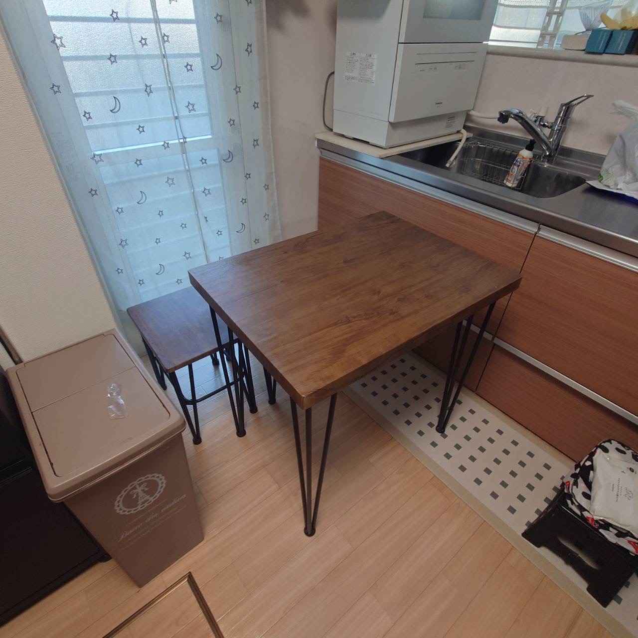 続いては、キッチンスペースにぴったり収まったダイニングセットです。