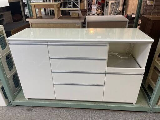 【超目玉・パモウナ入荷!】憧れの鏡面ホワイト・キッチンカウンター(幅140cm)が驚愕の80%OFF!?