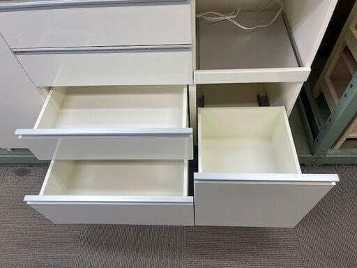 - 清掃済み: 当店自慢の清掃スタッフが、引出しの奥から裏面まで徹底的にクリーニングを行いました。「中古家具特有のベタつき」などは一切ございませんので、すぐにご使用いただけます。