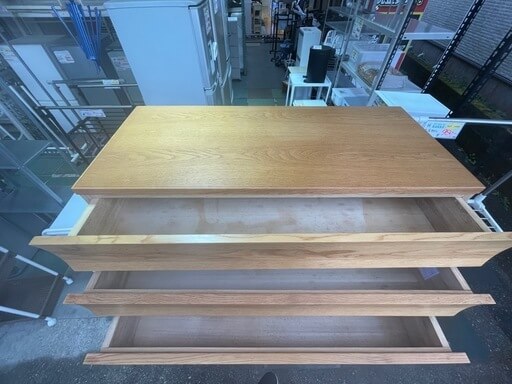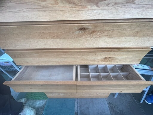 リサイクルショップ八光では、こうした高級家具が入荷した際、専門スタッフが隅々まで検品を行っています。 引き出し内部の清掃はもちろん、外装のオイルメンテナンスや微調整を行い、最高級家具に相応しい状態に仕上げてから店頭にお出ししています。