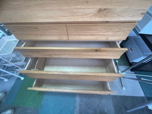- 職人技が光る引き出し:高級家具の証である「地板(じいた)」が各段に入っており、長年使用しても本体の歪みが出にくい構造になっています。また、重い衣類を入れても驚くほど滑らかに引き出せる作りは、まさに熟練工の技です。
