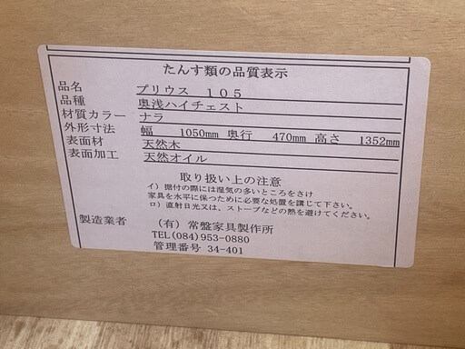 常盤家具製作所のプリウスシリーズ、特にこの105サイズのハイチェストが中古市場に出ることは極めて稀です。一度購入されたら数十年は手放さない方が多いため、リサイクルショップでも「見つけたら即買い」レベルの超希少アイテムです。
