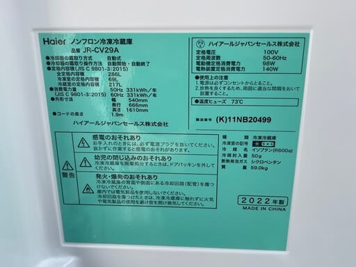 本日入荷!高年式2022年製!ハイアール 286L 3ドア冷蔵庫 JR-CV29A-Kが衝撃の格安価格!🔥