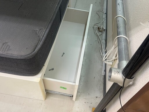 引き出しの動作:引き出しがスムーズに開閉できるか、レールの破損がないかチェック。