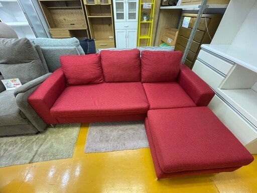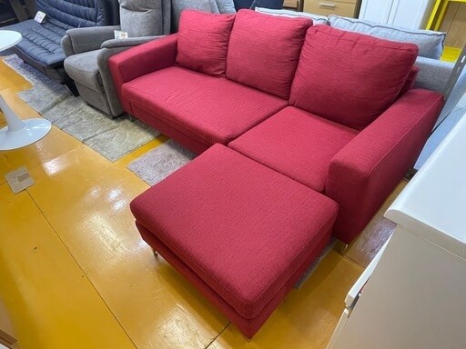 🔥【一点限り】お部屋の主役に!情熱のレッド!3人掛けカウチソファ+オットマンが驚きの価格で入荷!