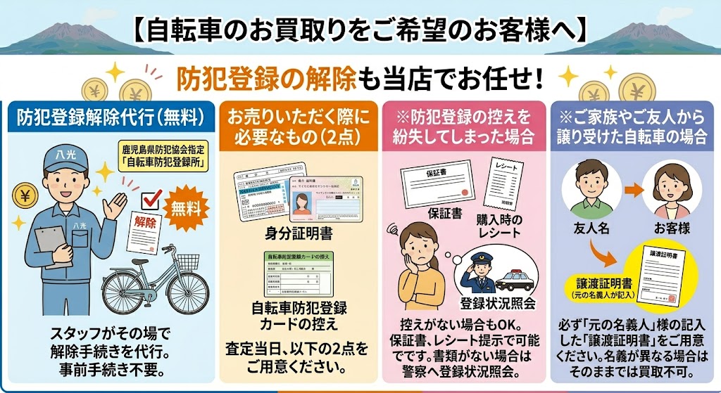 【自転車のお買取りをご希望のお客様へ(防犯登録の解除も当店でお任せ!)】