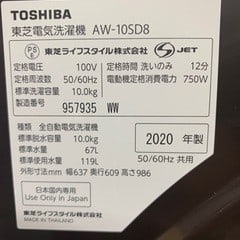 東芝 AW-10SD8(T) グレインブラウン ZABOON [簡易乾燥機能付洗濯機(10.0kg)]