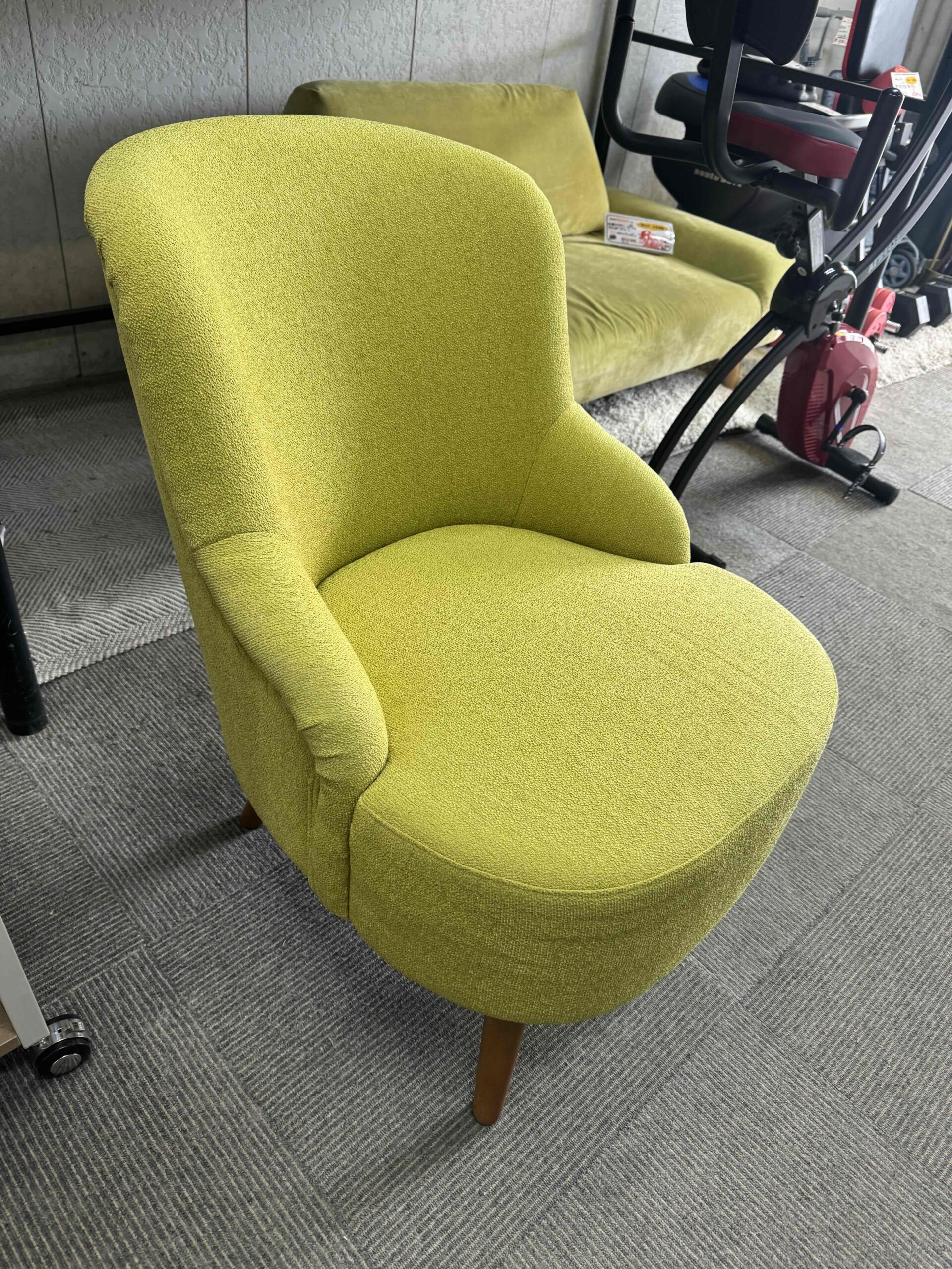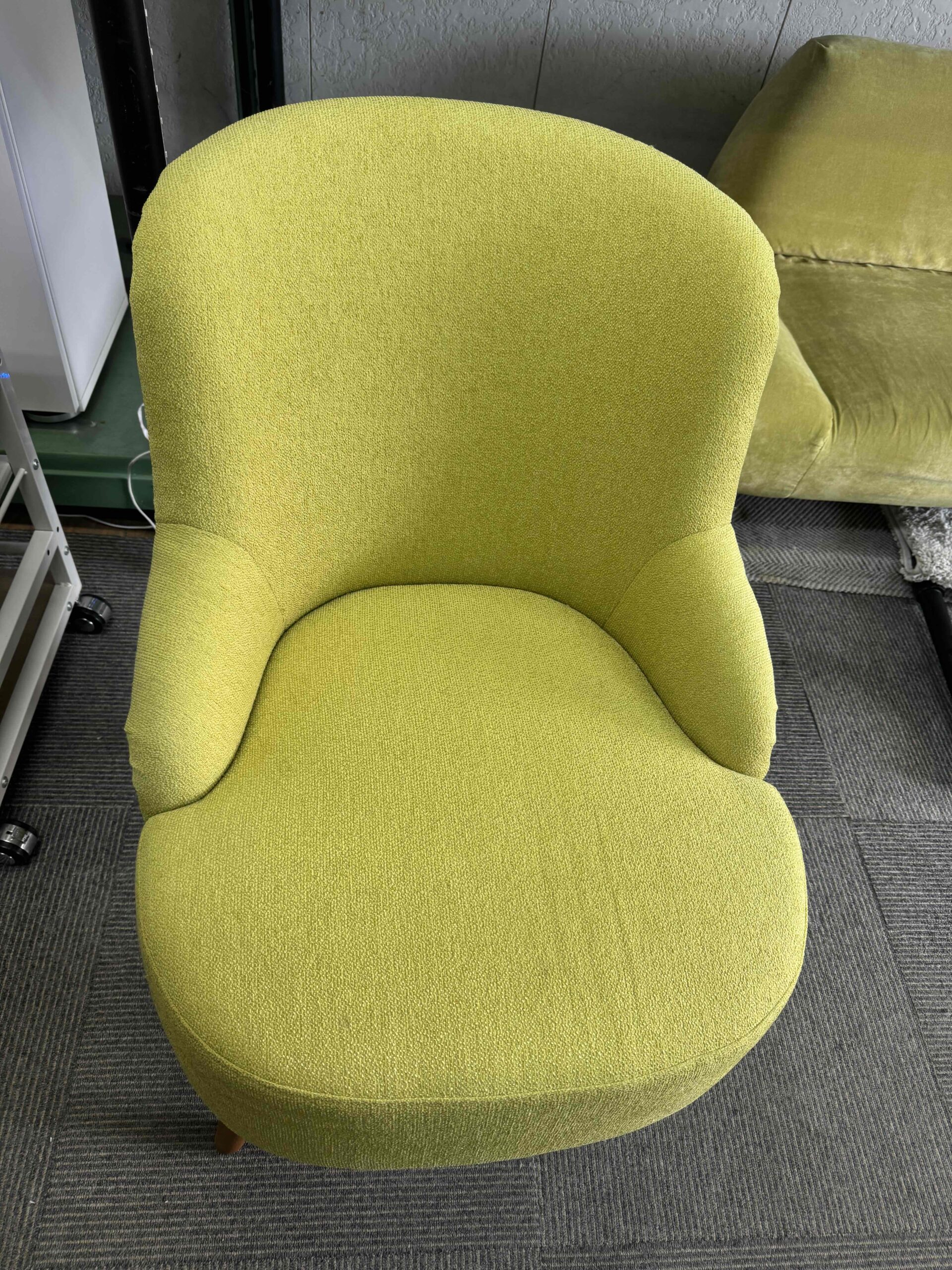 こちらのソファも、座面や背もたれにヘタリは少なく、ファブリックも比較的きれいな状態です。