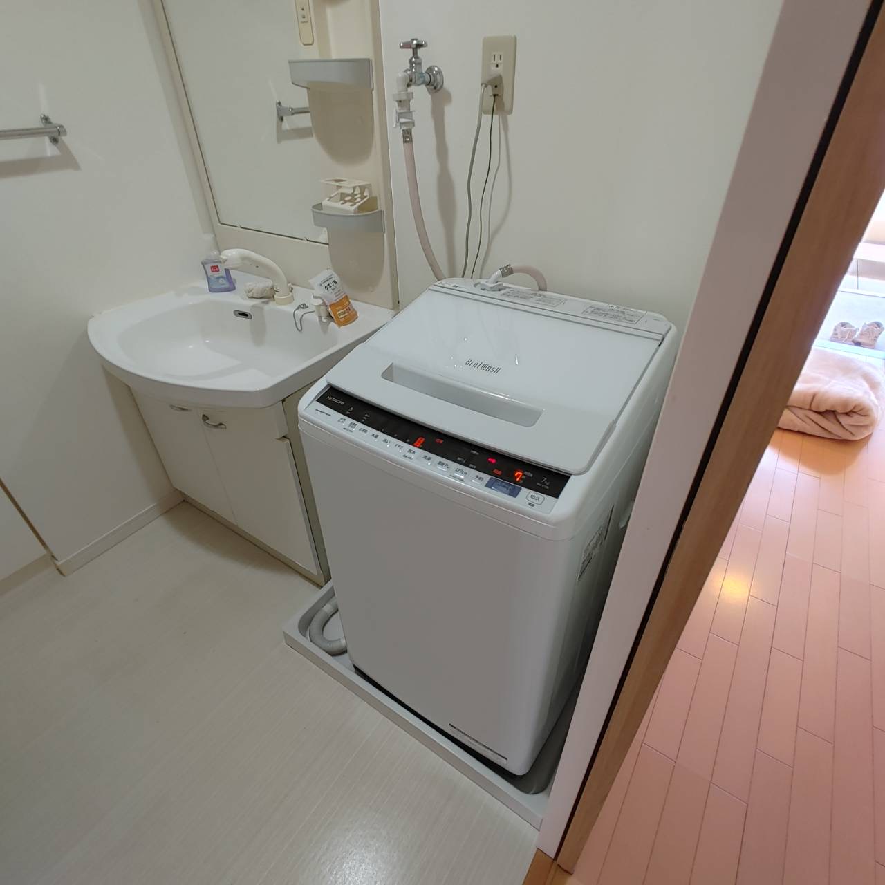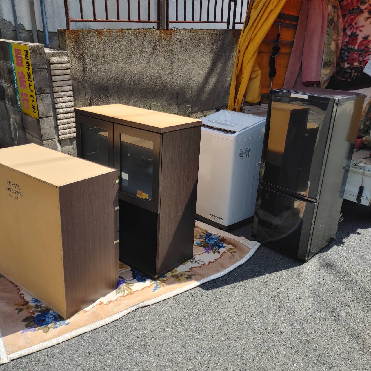 今回は引越し荷物として、日立(HITACHI)の洗濯機ビートウォッシュ、三菱(MITSUBISHI)の2ドア冷蔵庫、そしてニトリの食器棚コパン(80KB-DBR3 / 幅80cmサイズ)などの大型家電・家具を中心に運搬いたしました。