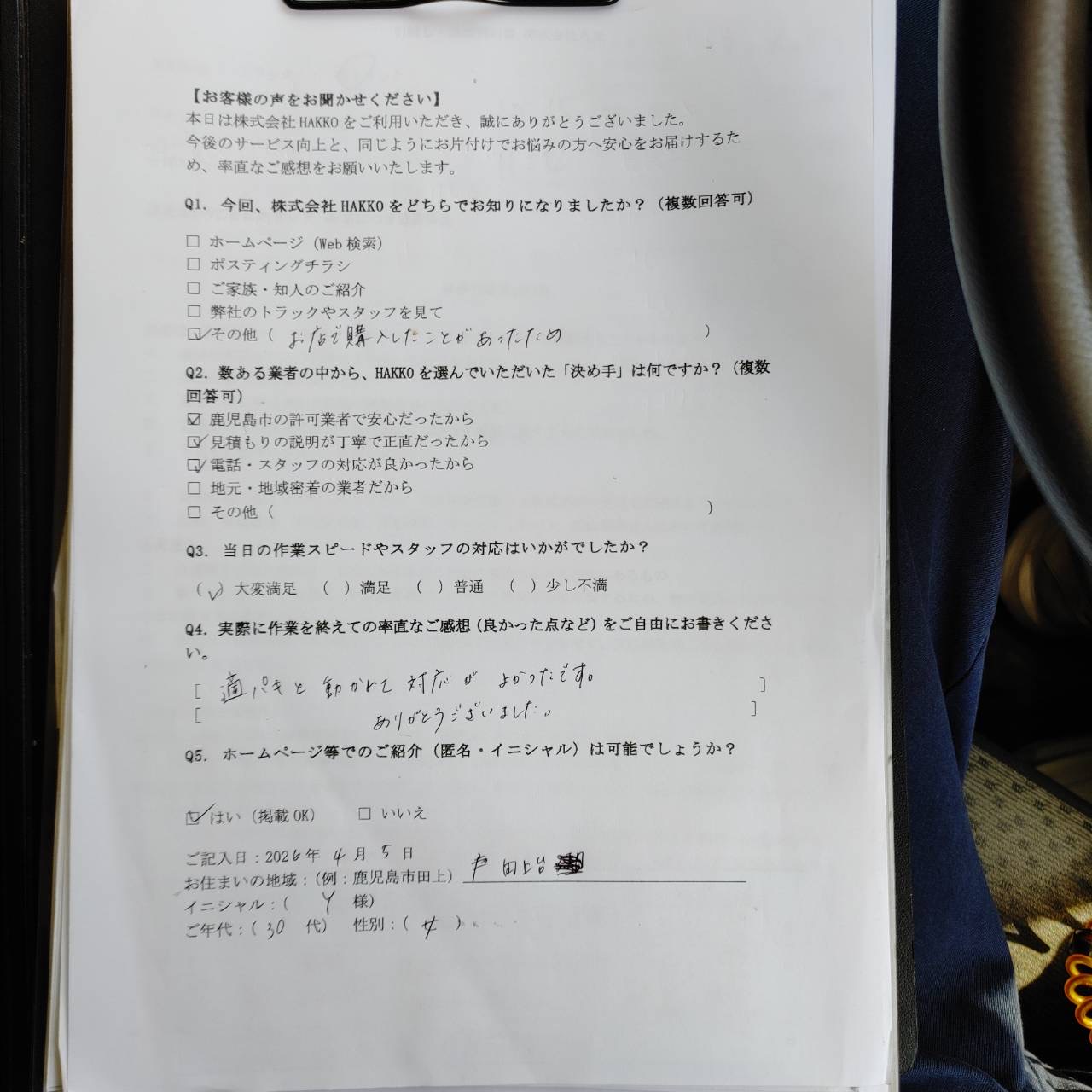 スタッフ2名体制でお伺いしたため、重たい荷物もスムーズに運び出すことができ、約1時間という短時間でテキパキと作業完了です!アンケートでも対応をお褒めいただき、嬉しい限りです。