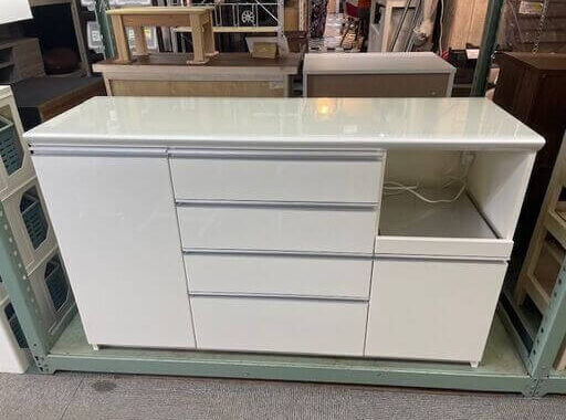 【超目玉・パモウナ入荷!】憧れの鏡面ホワイト・キッチンカウンター(幅140cm)が驚愕の80%OFF!?