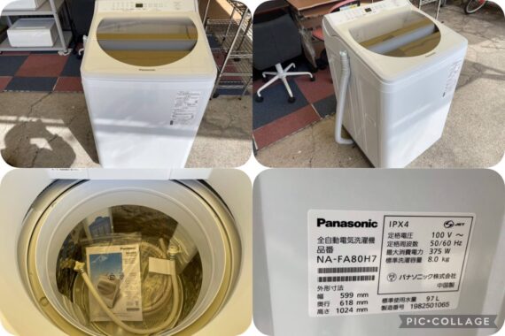 パナソニック 8kg 全自動洗濯機 泡洗浄・パワフル立体水流 ホワイト NA-FA80H7-W 店頭販売税抜き価格 ¥58000 8㎏の大型洗濯機を入荷致しました。 写真の通り、大きな傷もなく綺麗な商品かと思います…