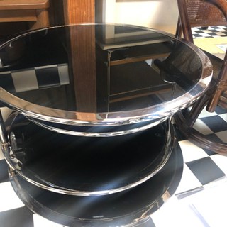 鹿児島市 リサイクル テーブル販売は八光にお任せ下さい。 店頭販売価格¥5500円税込み ブラック&メタルシルバー 強化ガラス製スライド式4段テーブル 写真の通り、多少の使用感・小傷等ありますが使用に問題なく良好…