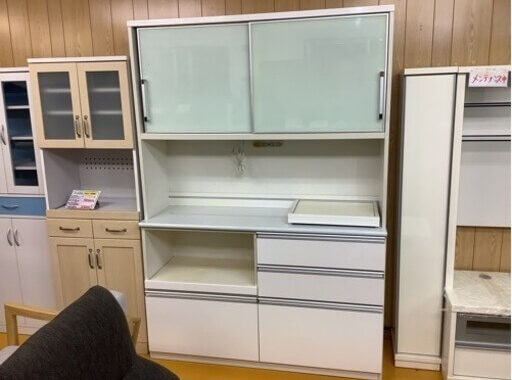 鹿児島市 中古家具 エナメルホワイト 壁面テレビボード 55型まで対応の販売の事なら八光へ!!! こんばんは、…